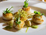 The George Grill serves a modern European menu with a sunny, Mediterranean slant. At the heart of the kitchen is a wood-charcoal grill, where the kitchen team, led by Robert Wright, fast-cook local meats, vegetables and seafood just caught from Rye Bay.