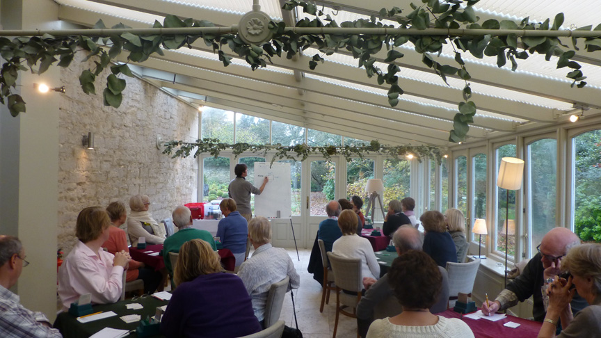 Time flew by with two full days of bridge, great food and excellent company. The late autumn weather was glorious: the reds and oranges of the trees contrasting with the deep blue of the skies. Some guests, complete with bright green wellies from the hotel, found a few spare moments to explore the surrounding area and on bumping into the gamekeeper, were immediately asked if they were bridge players: news had spread quickly in Crudwell!