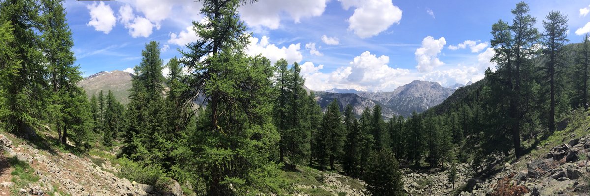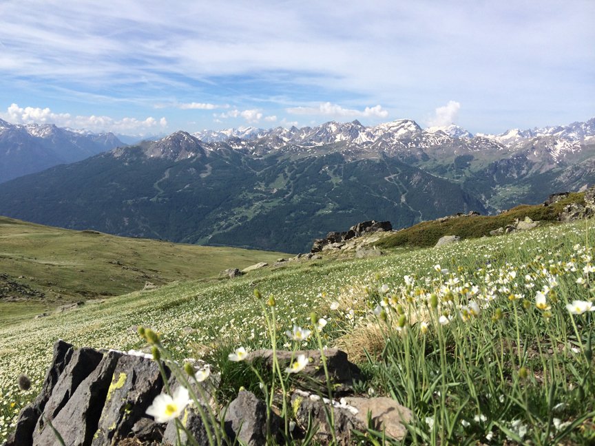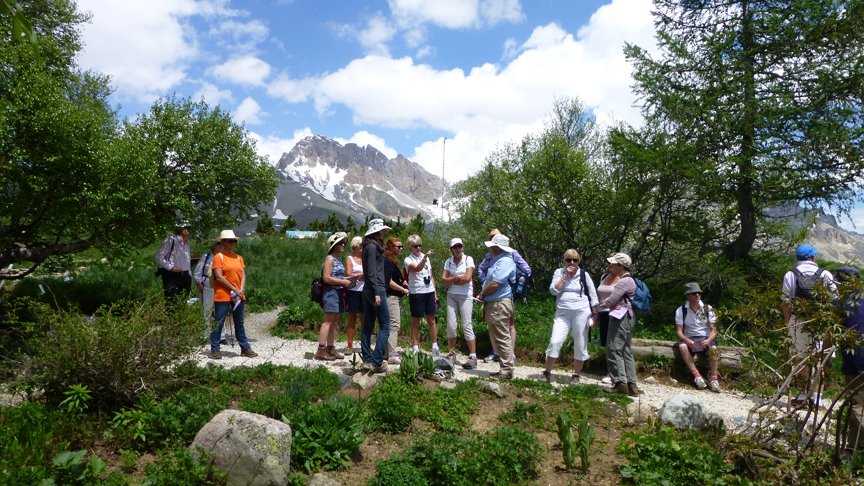 View of the glaciers of La Meije from the Jardin Alpin du Lautaret at 2100m altitude.